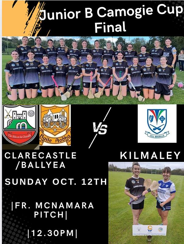 Margaret O' Regan Cup Final and the Senior Camogie Glenomra Shield Semi-Final both on Sunday afternoon in. Fr. McNamara Park.