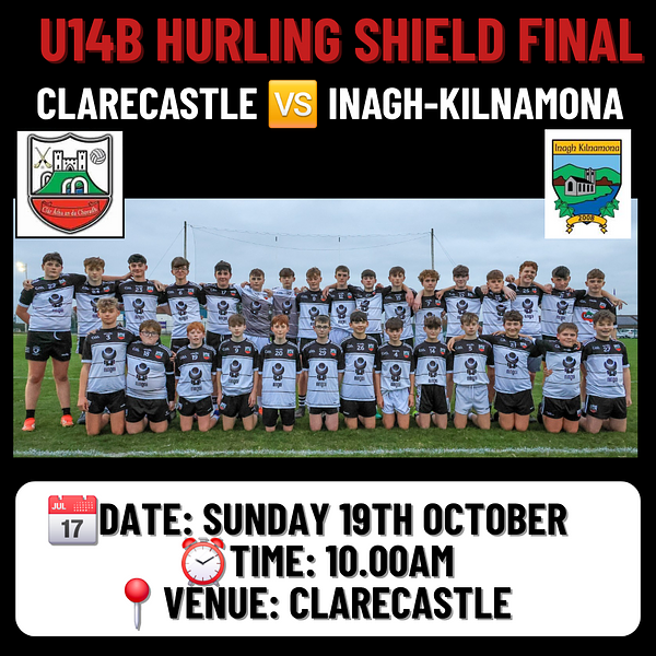 Please note Clare GAA will be collecting an entrance fee to the U14 B Shield. Shield prices are β¬5 as standard and can be paid online in advance. Option at link to purchase combo ticket for club members attending Intermediate final.