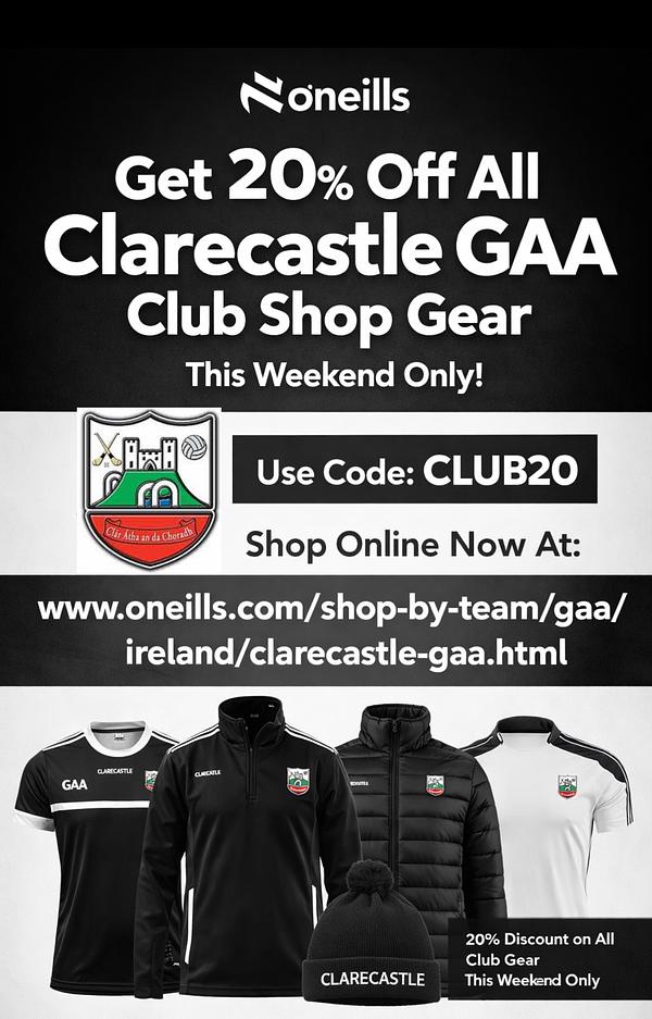 O’neills are currently running a 20% discount on all club shop gear this weekend when you use code CLUB20 at checkout!
