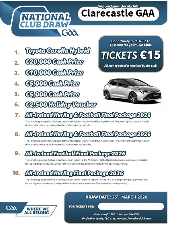Tickets are β¬15 for the year, and every euro raised stays with the club to support our adults, underage teams, equipment and facilities.