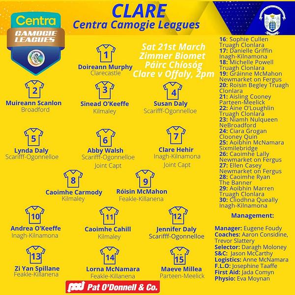 Best of luck to Doireann Murphy and the Clare Senior Camogie team as they play their final group game today against Offaly in the Centra Ireland Camogie League!
