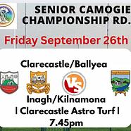 Senior Camogie Championship Rd. 5Clarecastle/Ballyea 🆚 Inagh/Kilnamona📅 Friday September 26th🕒...