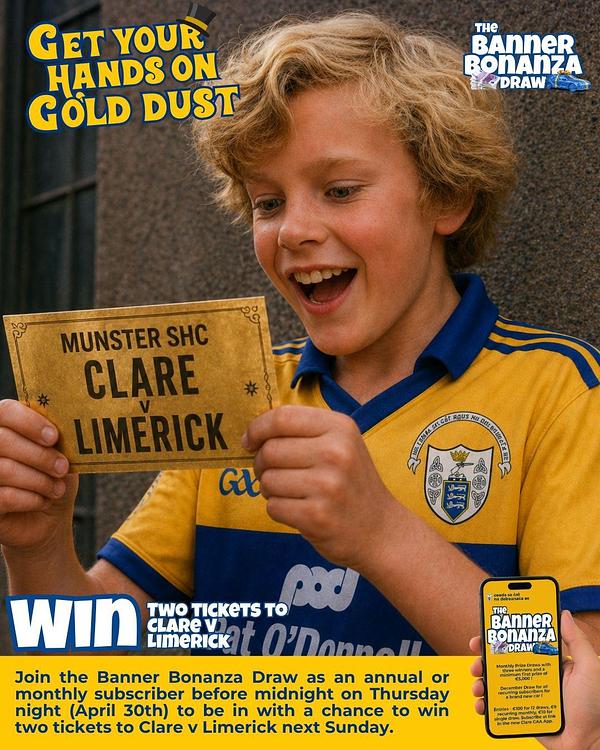 Join the Banner Bonanza Draw as an annual or monthly subscriber before midnight on Thursday night to be in with a chance to win two tickets to Clare v Limerick next Sunday .